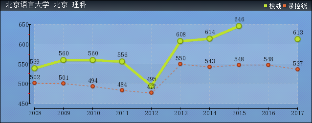 北京语言大学各省市录取分数线(北京理科